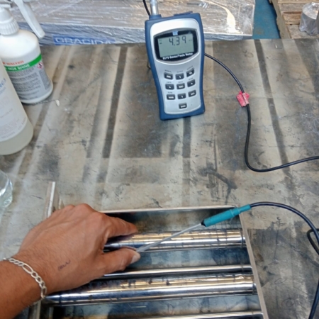 - Medición de intensidad magnética: mediante un gaussímetro calibrado bajo la norma ISO/IEC 17025:2017, se mide la intensidad magnética real del equipo y se compara contra las especificaciones técnicas y las necesidades del proceso.